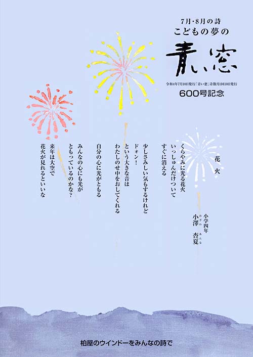 600号の記念会では、表紙を飾った詩「花火」を投稿した同市の小澤杏夏さん(10)=小原田小5年=が詩を読み上げた。新型コロナの影響で外出できない中で募った花火への想(おも)いを表現した。「自分の心に光がともる みんなの心にも光がともっているのかな? 来年は大空で花火が見れるといいな」とつづった。