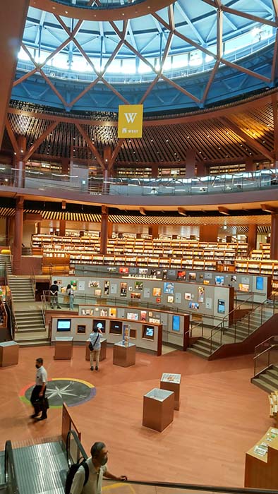 開架図書は30万冊を数え、全国有数の規模。うち7万冊はテーマごとに並んでいる。その並べ方にも特徴があり、「本と出会う12のテーマ」と名付けられ、「暮らしを広げる」「好奇心を抱く」「身体を動かす」などがある。関連するテーマごとにジャンルにこだわらない本が並び、教養の視野が広がっていく。