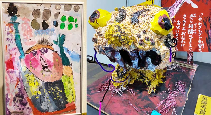 秋田県特別支援学校文化祭の第20回「わくわく美術展」がこのほど、秋田市にぎわい交流館で開かれた。県内では幼稚部から高等部まで16校に約1300人が在学。今回は約900点の応募から、絵画105点、立体造形などの自由制作40点が展示された。主催は特別支援学校文化連盟の美術部局。