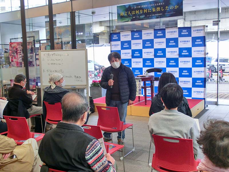 「これまでの考古学は土器や石鏃(せきぞく)など遺物の形態や遺物の年代といった編年に終始するきらいがありました。しかし、縄文時代を真に理解するためには、縄文時代の精神・世界観まで探る必要があるのではないでしょうか。これからの縄文研究の課題はそこにある」――こう語るのは元北海道考古学会会長の大島直行氏。11月12日、紀伊国屋書店札幌本店・インナーガーデンで開催された記念講演の講師として招かれた大島氏は「縄文人は何を何に象徴したのか」をテーマに1時間半ほど講演した。