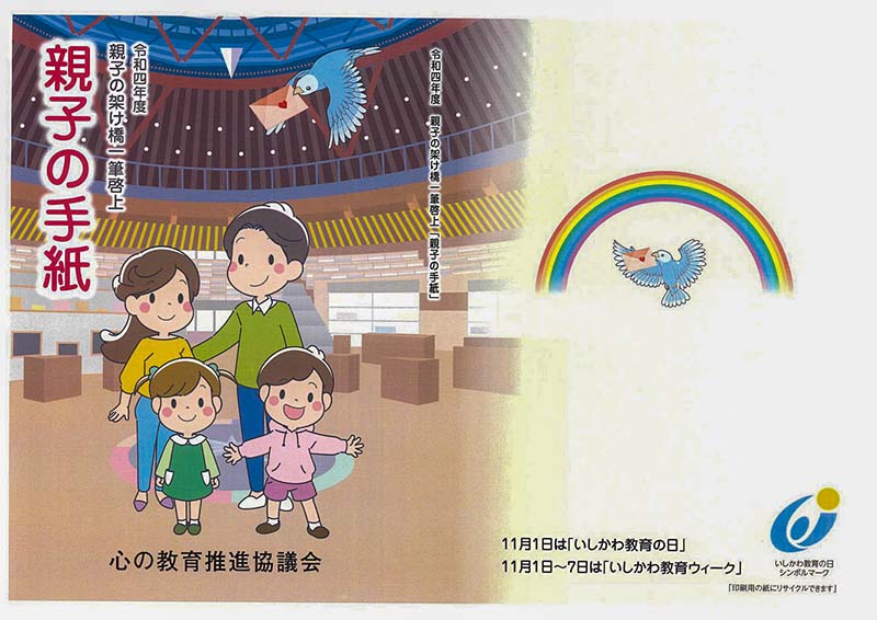 小・中学生と保護者が、100字の短い手紙で互いの思いをつづる「親子の架け橋一筆啓上『親子の手紙』」が話題を呼んでいる。石川県教育委員会の「心の教育推進協議会」が続けている取り組み。今年度で四半世紀を迎えた。応募総数は2万7264点で、その中から優秀賞10組が選ばれて冊子になり、家族だけでなく、広く県民に読まれている。(日下一彦)