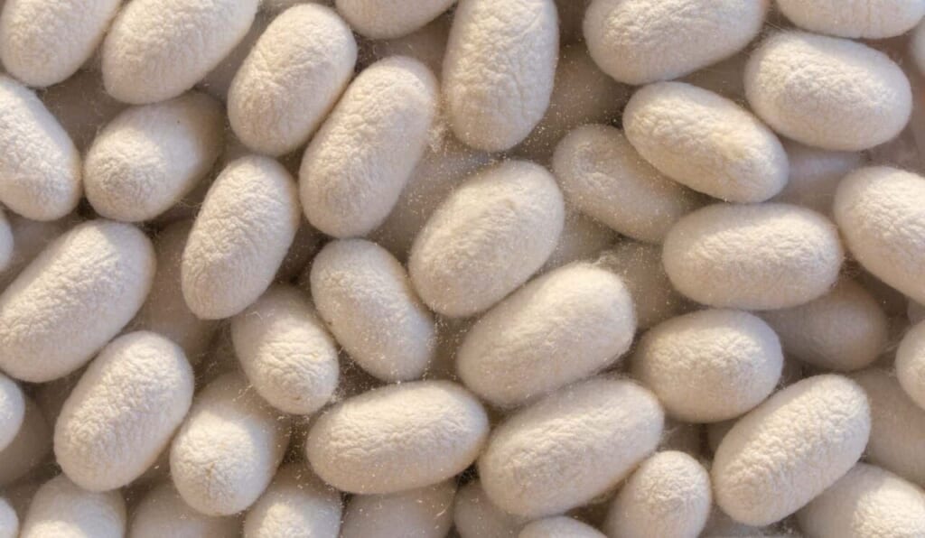 「薄繭の出来ゆく音の微かにも」(木暮つとむ)。「繭」は、昆虫がサナギになる時の家のようなものだが、俳句の季語の場合、蚕の繭のことを指す。この繭から絹糸が取れることは昔から知られ、古事記や日本書紀の神話にも出てくる。