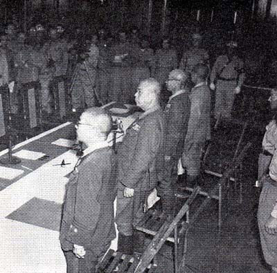 米軍の投降勧告に応じ、9月に山を下りた。部下に代わり責任を負う必要があるとして自決の途(みち)は選ばなかった。武人の誉れよりも組織の秩序を優先させた官僚的対応と言えようか。バギオでの降伏調印式には、マッカーサーの指示でパーシバル中将が呼び寄せられ、山下が署名に用いた万年筆が贈られた。屈辱を与え、報復の裁きの幕開けを示す演出だった。