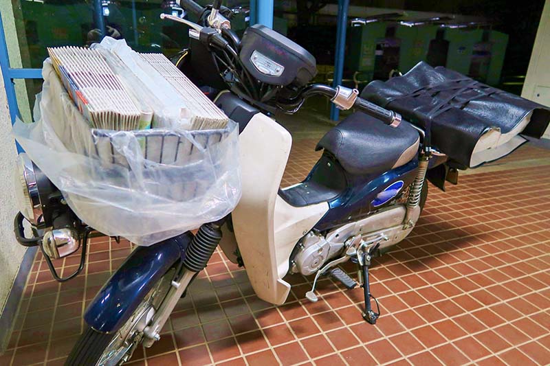その時は、雨の日にはまだビニールで個装してはいなかった。朝起きると、自転車の籠に新聞の束を入れ、荷台にも積み、その上にビニールなどをかぶせて出発した。