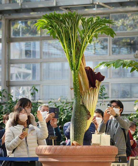 東京都調布市の神代植物公園で、世界最大級の花「ショクダイオオコンニャク」が開花した。そのニュースが小紙(21日付)に紹介されたので、さっそく見に出掛けた。