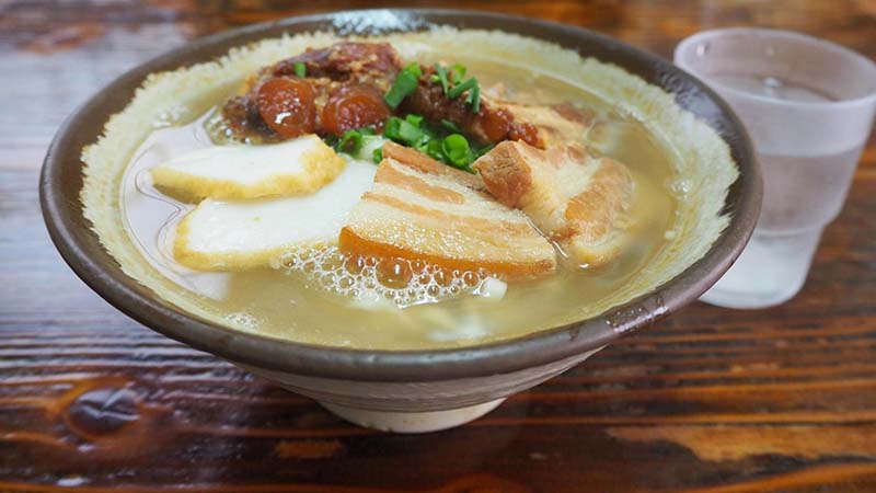沖縄そばは、そば粉を使って作られる一般的な「日本そば」とは原材料や調理方法が異なる。麺は100%小麦粉から作られ、ダシは豚、かつお節、昆布などからとる。三枚肉やソーキ(あばら肉)、かまぼこなどの具を載せ、刻みネギと紅生姜(しょうが)を添えて食べるのが一般的。どちらかというとそばよりラーメンに近い料理かもしれない。