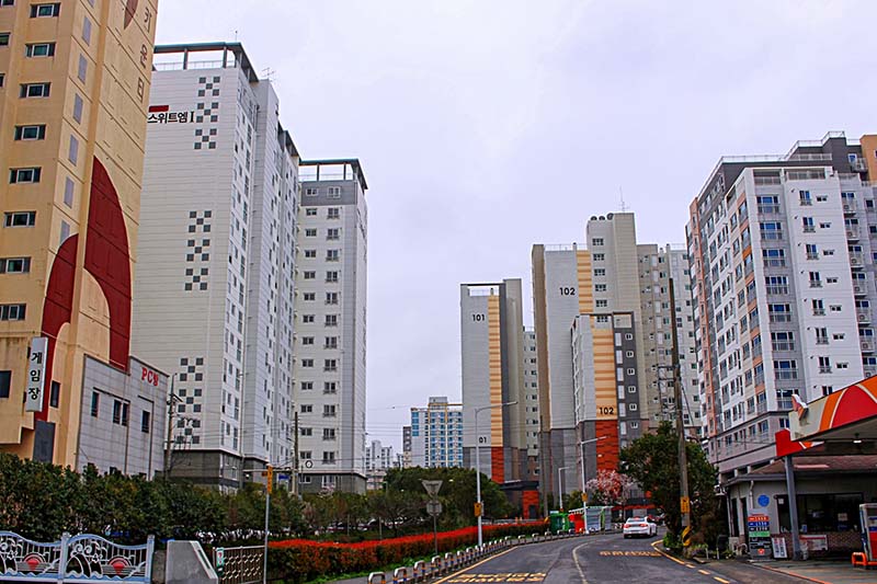 韓国を旅行すると印象に残る風景がある。バスから見える風景だが、一つはどこへでも行くことができる高速道路。そしてもう一つが至る所で林立する高層マンション群だ。