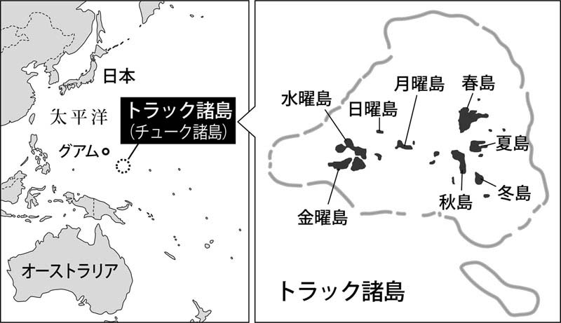 日本本土から南に約3千キロ、カロリン群島にその島はあった。太平洋戦争当時、南洋における日本海軍最大の根拠地だったトラック島である。もっとも、俗にトラック、あるいはトラック島と呼ばれたが、サイパン島やグアム島のようにトラックという名の一つの島があったわけではない。
