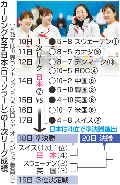 4年前も最終戦でスイスに敗れたが、くしくもスウェーデンが勝ったことで4強入り。鈴木が「デジャブ(既視感)だけど、個人的には4年前より楽しめている」と話せば、リードの吉田夕も「棚ぼた準決勝なので、やることをやるだけ」。これで肩の力は抜けたようだ。