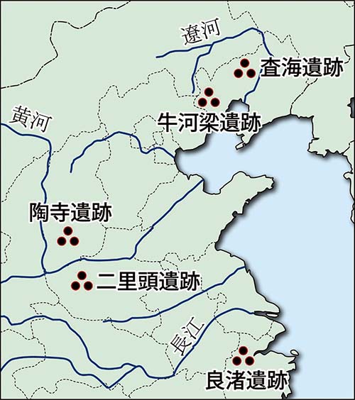 中国浙江(せっこう)省一帯に広がる「良渚(りょうしょ)文化」が、夏殷周の3王朝に先立つ「中国最古の虞(ぐ)朝」とする考え方が注目されつつある。虞朝は夏朝以前に存在したと古文献に記された王朝だ。伝説的な三皇五帝のうち最後の堯(ぎょう)や舜(虞舜ともいう)やその系列(虞氏または有虞氏)の王朝を指す。