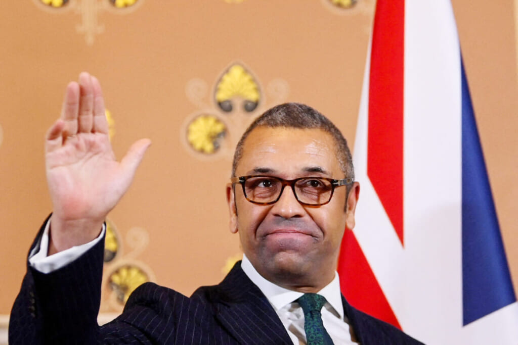 12日、ロンドンで、外交方針を示す基調演説に臨むクレバリー英外相(AFP時事)