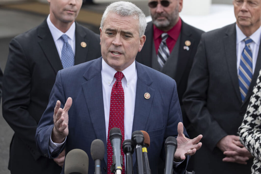 記者会見に応じるブラッド・ウェンストラップ米共和党下院議員=2019年1月15日、ワシントン(UPI)