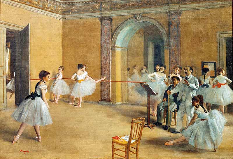 一方、ドガはマネと異なり、伝統的な権威あるサロン展に対抗し、印象派の若い画家たちが集まって1874年に始めた印象派展に毎回出品した。そのため古典的絵画に反抗する好戦的な印象派の画家との烙印(らくいん)が押された。つまり、印象派の画家の急先鋒(せんぽう)のように言われた。