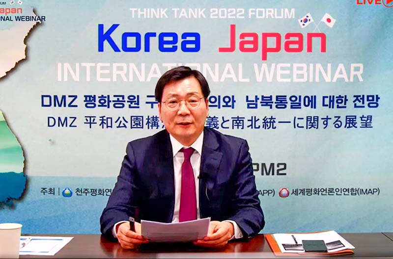 世界各国の報道機関や言論人が恒久平和の構築に向けて協力する「国際平和言論人協会」(IMAP)は26日、国連NGOのUPFとの共催で、「DMZ(非武装地帯)平和公園構想の意義と南北統一に対する展望」をテーマとする日韓国際ウェビナー(オンラインセミナー)を開催した。
