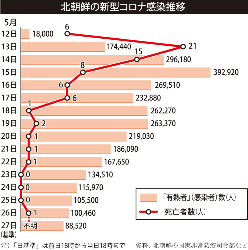 死亡者も26日現在計69人、致死率はわずか0・002%だ。これは日本(0・35%)や韓国(0・13%)はもちろん、世界的に致死率が低い台湾の0・01%よりも圧倒的に低い。西側諸国のワクチン提供を拒否し、劣悪な衛生環境や慢性的な栄養失調で免疫力が低い北朝鮮で、果たしてこの数字は可能なのか。