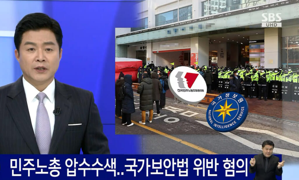 民主労総への強制捜査を伝える韓国テレビのニュース番組