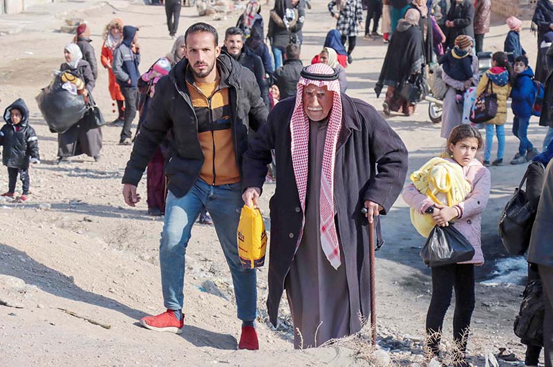 とクルド人勢力の戦闘を受け、避難するシリアの人々=1月22日、シリア北東部ハサカ(AFP時事)-300x199.jpg)