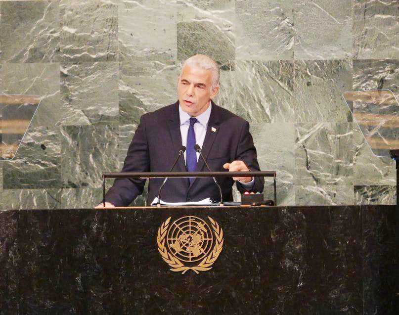 一方、パレスチナ自治政府のアッバス議長は23日、国連総会の一般討論で演説し、ラピド氏が前日の演説でパレスチナ国家の樹立を認める2国家共存を支持する考えを表明したことについて「前向きな進展」と歓迎。「イスラエル政府が直ちに交渉を始めてこそ、信頼性と真剣さが証明される」と述べ、イスラエルとパレスチナの和平交渉の再開を求めた。また、ユダヤ人入植地の建設、パレスチナ人の住居の取り壊しや立ち退き、殺害などイスラエル当局による一方的な行動をやめるよう求めた。