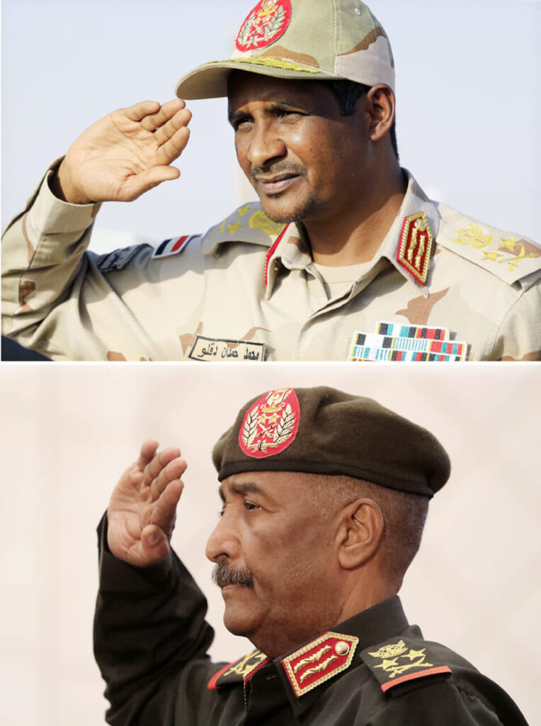今回の衝突の中心にいるのは、ブルハン氏とダガロ氏の2人だが、両者はバシル独裁政権打倒で共闘し、軍事クーデターでも協力した間柄だ。2018年末にパン価格高騰をきっかけとして反政府デモが全土で発生した後、ブルハン氏率いる軍とダガロ氏率いるRSFは19年、協力して当時のバシル大統領を失脚に追い込んだ。30年に及んだバシル独裁政権の崩壊後も、民主化を求めるデモが続き、軍と文民の統治評議会が設けられた。最初の2年間は軍が政権を担った。ところが、文民政権に交代する直前の21年、軍は主導権を維持するためクーデターを実施。軍とRSFが全権を掌握した。