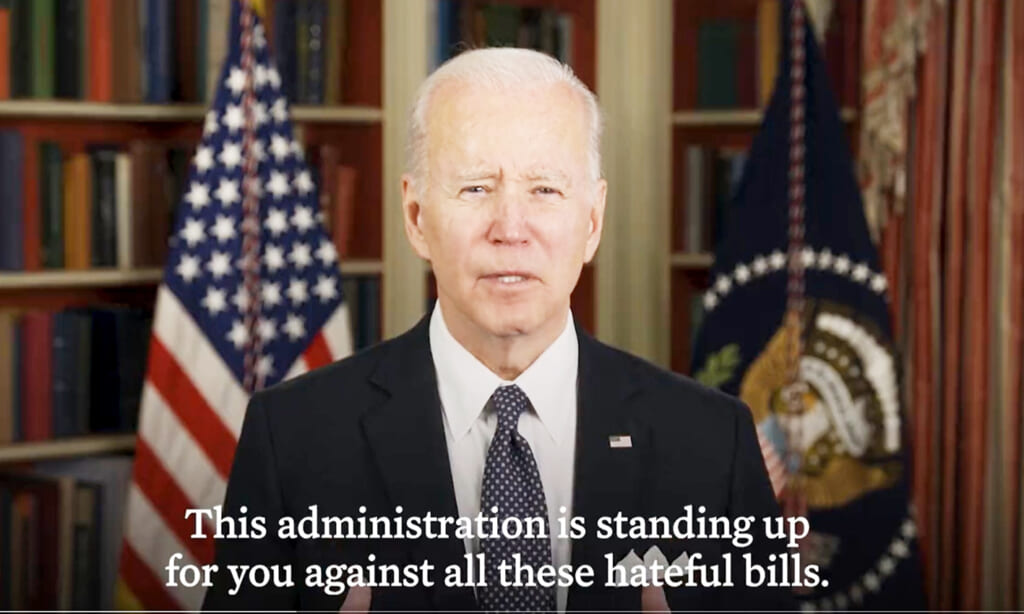 その中で、共和党の強い州で子供への性別適合治療を禁止する州法が成立していることなどを念頭に、「反トランスジェンダーの州法は間違っている」と批判。その上で「政権はこれらすべての憎悪に満ちた法案からあなた方を擁護する」と対決姿勢を鮮明にした。