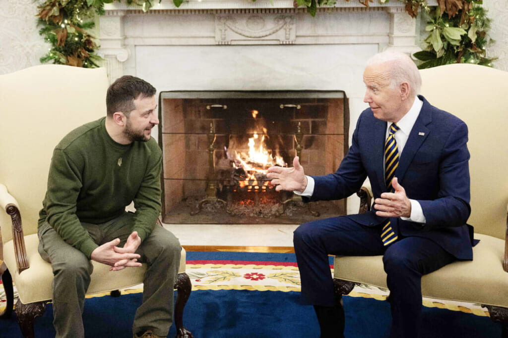 約2時間半に及ぶ会談後の共同記者会見で、バイデン氏は「プーチン氏にこの残酷な戦争を止める意思がないことは分かっている。 米国は勇敢なウクライナの人々がロシアの侵略から自国を守り続けることができるよう必要な限り尽力する」と述べ、支援を継続する考えを強調。また「プーチン氏はこの戦争に勝てないことに気付くことになるだろう。その時こそ、ゼレンスキー大統領がこの戦争をどう終結させるか決定すべきだ」と述べ、ウクライナ側の主張に沿った形での戦争終結を目指す考えを示した。