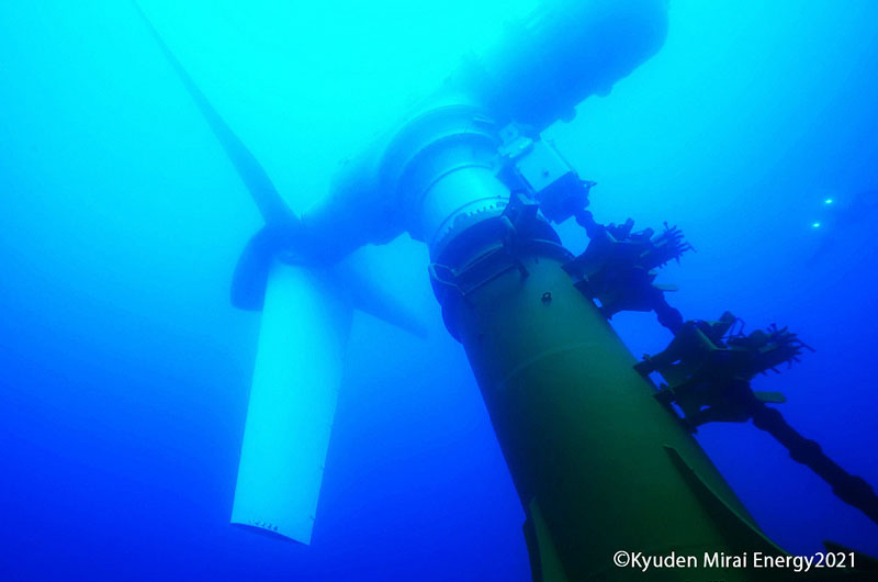 長崎県五島市沖で潮流発電の実証事業に使われている発電機(九電みらいエナジー提供)