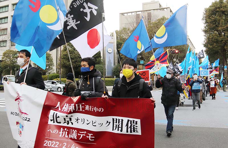 北京冬季五輪が開幕した4日、オリンピック精神と懸け離れた人権抑圧が繰り広げられる中国での開催に抗議するデモが世界各国で行われた。都内では、在日のウイグル人や南モンゴル人など約50人が六本木から日比谷公園までデモ行進を行い、「五輪憲章に反して人権弾圧を行っている中国に五輪開催を行う資格はない」と訴えた。