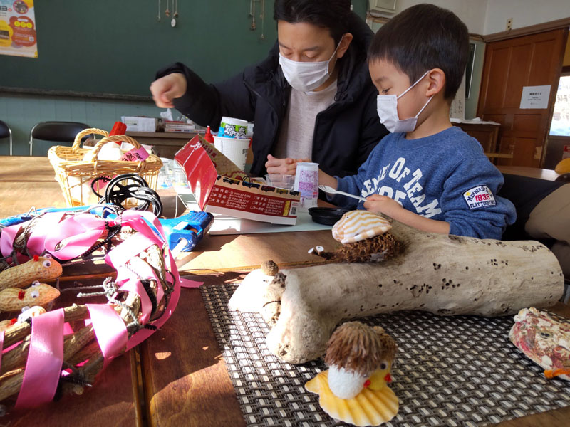 アートを通じて海ごみ問題に関心をもってもらおうと、秋田県由利本荘市の海岸から拾ったごみでオリジナルのアート作品を制作する「海ごみアートワークショップ」が12、13日、同市の鳥海山木のおもちゃ美術館で開かれた。