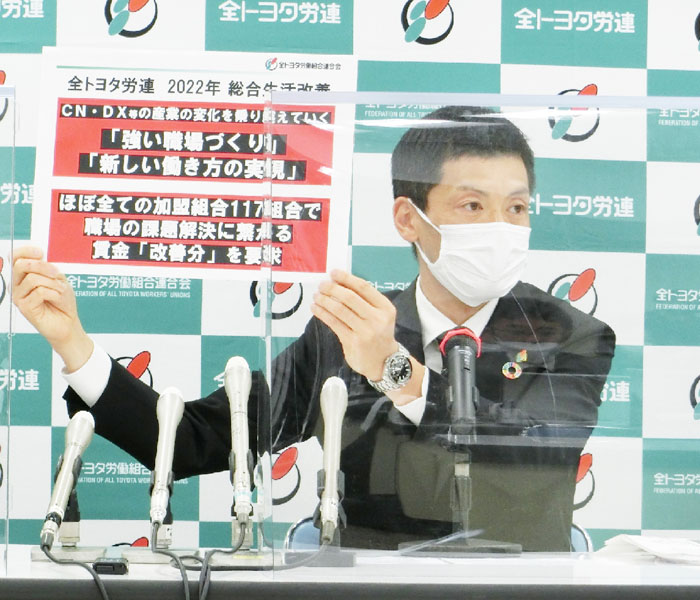 2022年春闘について記者会見する全トヨタ労働組合連合会の吉清一博事務局長=16日午後、愛知県豊田市