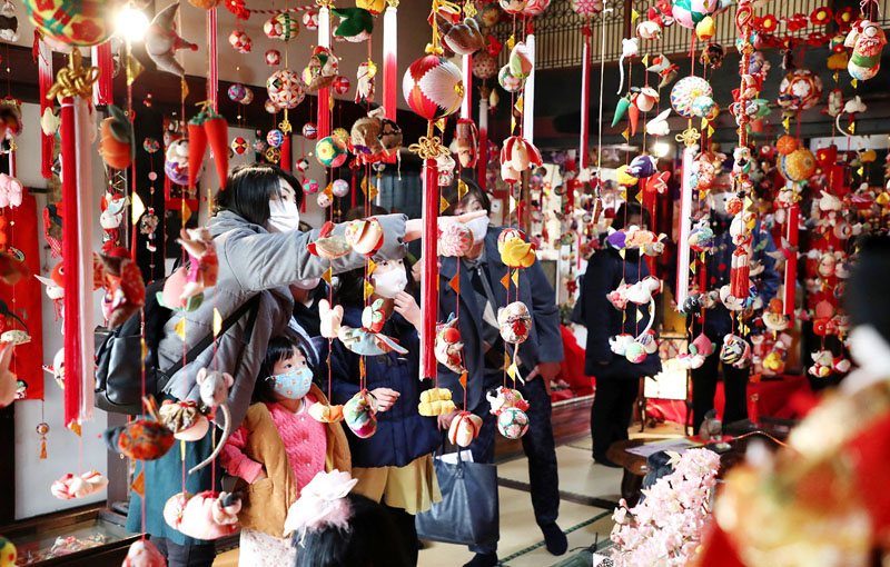 母と娘3人で訪れた同県筑後市の成清綾子さん(39)は「すてきな伝統行事。自宅でもおひな様を飾ったばかりです」と笑顔で話した。観覧無料、4月3日まで。