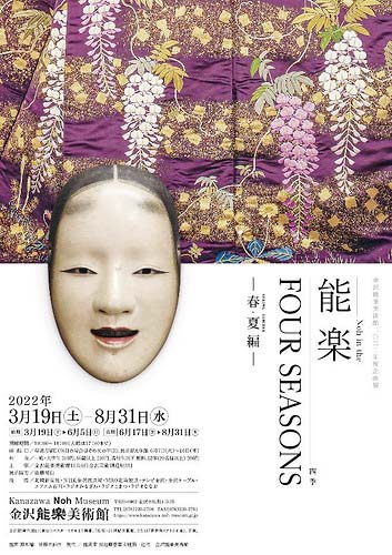 金沢市の金沢能楽美術館では、企画展「能楽FOUR SEASONS-春・夏編-」が開かれている。能楽には日本の四季のうつろいが、自然の景物とともに詩情豊かに表現されている。現行の約180曲のほとんどが、「春夏秋冬」に分類され、「季不定」の能は15曲ほどしかない。