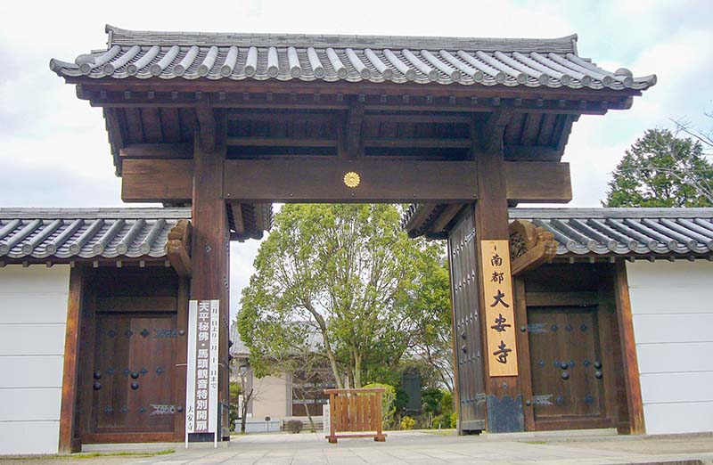 今は高野山真言宗だが、奈良時代には三論宗が中心の学問寺で、南都七大寺の一つ。かつては、26万平方メートルの広大な境内地に七重塔2基をはじめ90余りの堂棟が並び、千人もの学僧の中には、インドやベトナム、中国の僧に平安仏教を興した最澄と空海もいた。彼らは大安寺から華厳経(けごんきょう)を学びに東大寺へ、法相宗(ほっそうしゅう)を学びに薬師寺へと通い、当時の主要寺院は大学の学部のようであった。