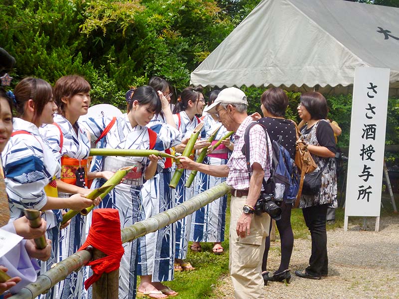 「癌封じ」となったのは、がんが現代における悪病の最たるものだから。6月23日の法要では、祈禱(きとう)後に青竹に入れて温められたささ酒が「笹娘」から授与される。今はコロナ禍で略式になっているのでご注意を。