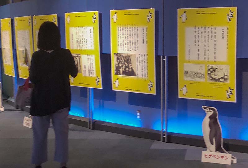 企画展の一角に、ペンギンの説明コーナーがある。ペンギンは主に南半球に18種類いるが、半数は絶滅危惧種に。南極(南緯60度以南)に生息するのはコウテイペンギン、アデリーペンギン、ヒゲペンギンなど5種類。同展は11月6日まで。