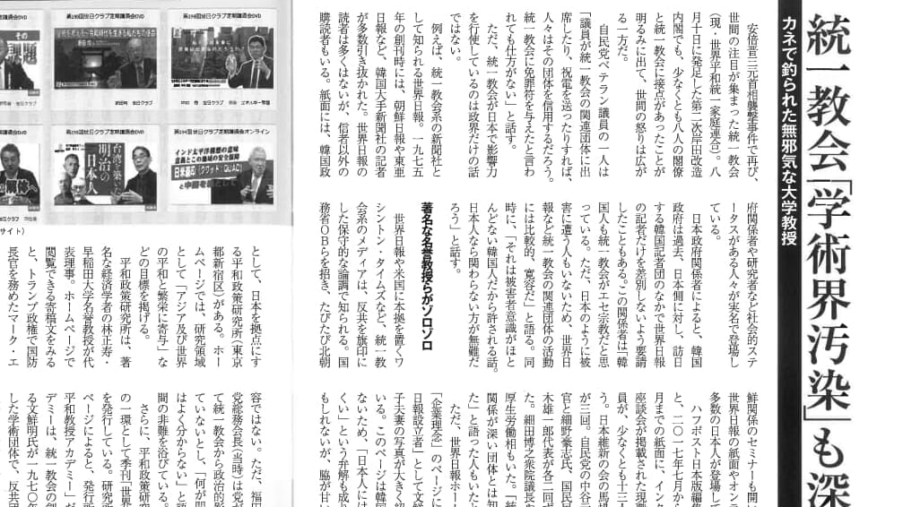 月刊誌「選択」が9月号で記事「統一教会『学術界汚染』も深刻」(以下、当該記事)を載せ、本紙(世界日報)と韓国紙セゲイルボ(세계일보、漢字表記=世界日報)を混同した記述をして読者に誤解を与えている。明確な事実誤認についての本紙の指摘にも関わらず、「通例」にならったとして居直り、訂正を拒否し、誤報を放置している。