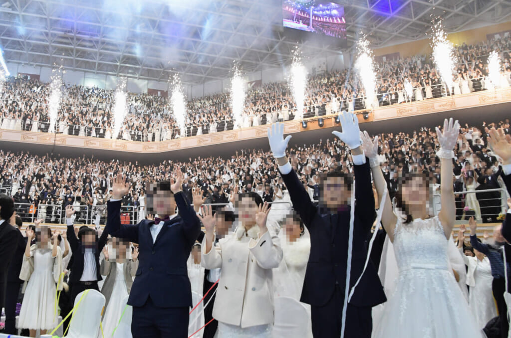 膳場氏はこうした元信者たちの話を前提に「教団はカルト的な思考回路によって信者が辛(つら)さを感じない状態にした上で、見知らぬ人との結婚で心身ともにリスクを負わせる。人によっては取り返しのつかない人生を破壊されたというケースもある」と語り、合同結婚式と信者の信仰を否定した。