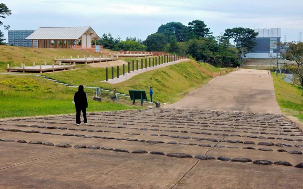 古代と同様の景観の創出は、同事業の重要なポイントとされる。周辺には、丘頂上部の政庁正殿跡をはじめ、南門の内側には歌枕の「壺(つぼ)の碑(いしぶみ)」とされる「多賀城碑」(国重文)がある。また南東約1㌔には附属寺院だった多賀城廃寺跡があり、その近くに東北歴史博物館が建つ。市街地には国司館跡などがあり、歌枕も幾つか散在する。一方、貞観地震(869年)による大津波が城下を襲った歴史があることも当地を探る上でのポイントの一つだ。