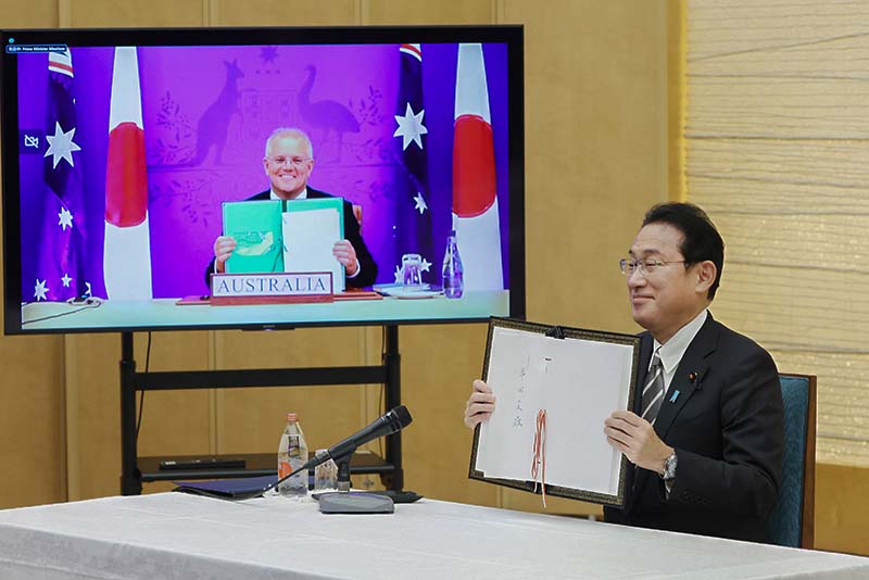 岸田文雄首相とオーストラリアのモリソン首相は、自衛隊と豪軍が互いの国に滞在した際の法的地位を定める「円滑化協定(RAA)」に署名した。