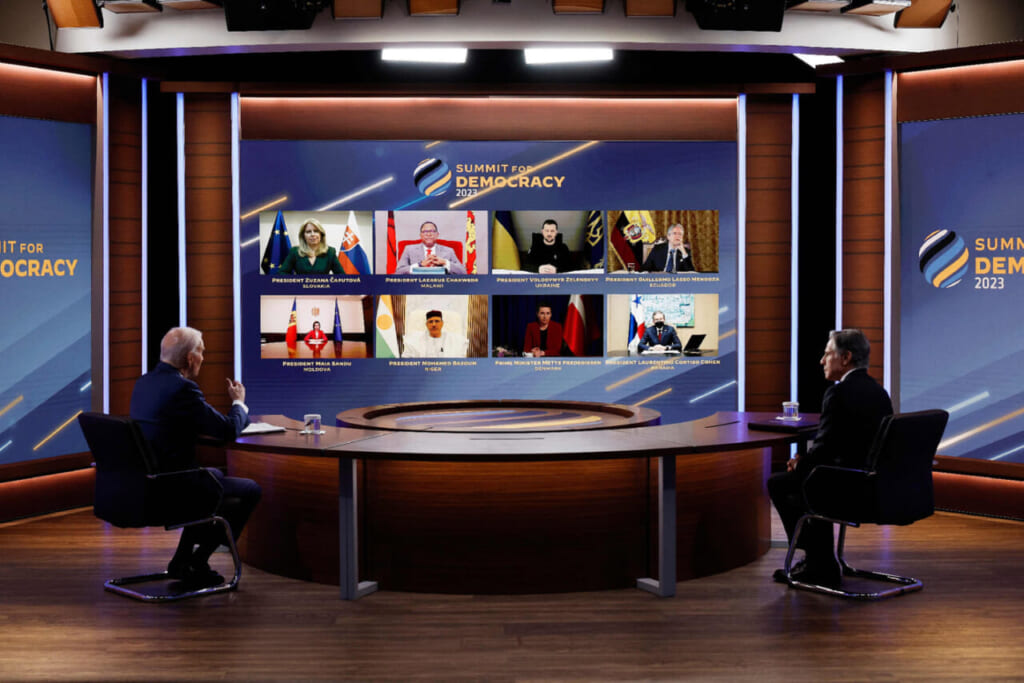 岸田文雄首相は、米国などが主催する「民主主義サミット」にオンラインで参加し、アジアとアフリカ諸国に対して司法制度や選挙制度の構築などを支援していく考えを示した。中国やロシアなどの脅威が高まる中、第三極の「グローバルサウス」と呼ばれる新興・途上国への関与を強める必要がある。