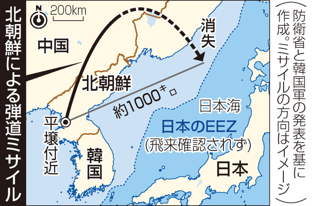 防衛省は発射を探知したが、直後にミサイルがレーダーから消失。日本の領域と排他的経済水域(EEZ)への飛来や、被害は確認されていない。岸田文雄首相はJアラートを「国民の安全を最優先するとの観点から発出した」と説明。約20分後の変更については「わが国領域に落下する可能性がなくなったので、改めて情報提供を行った」と述べた。