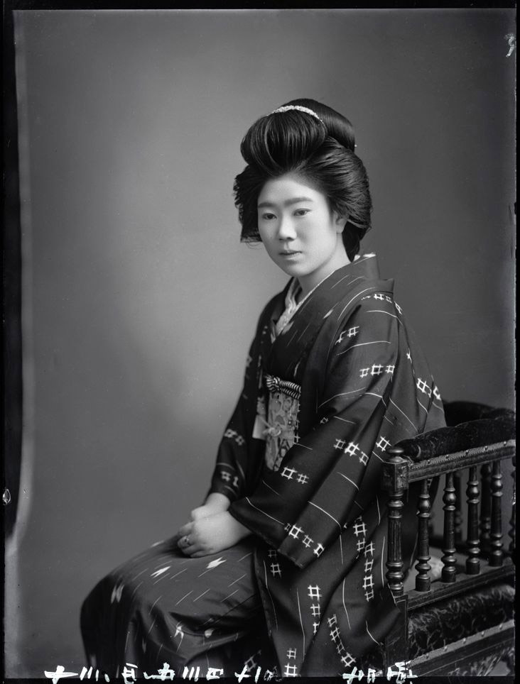 吉原写真館3代目、長平が撮影した次女ナルミをモデルにしたものだ。明治40(1907)年ナルミ6歳。