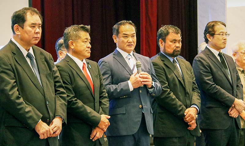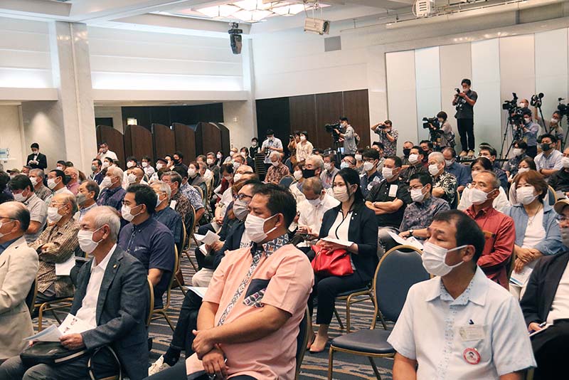 擁立決定を受け、佐喜真氏は「県民が豊かで幸せを実感できるようにしたいという思いで知事選挙に立候補した。大きなダメージを受けている県経済を立て直したい」と力強く述べた。