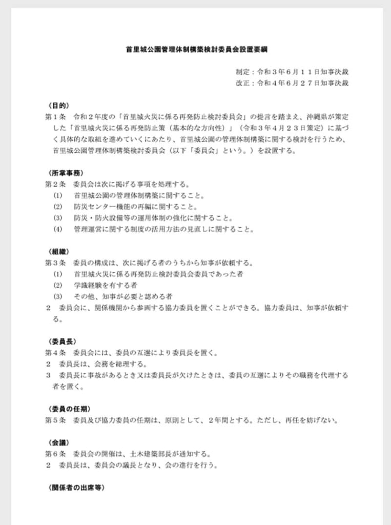 首里城公園管理体制構築検討委員会の設置要項