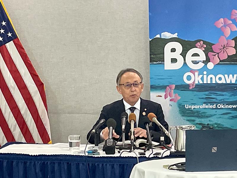 玉城知事は6日、就任後3度目(2019年以来)となる米国訪問に出発した。出発前、玉城氏は、今年1月に開かれた日米安全保障協議委員会(2プラス2)で、南西諸島において自衛隊と米軍が演習などで空港・港湾の共同使用を推進するとした合意について、「県は納得していない。まずは平和外交に日米同盟を向けるべきだ」と日米抑止力強化の否定とも取れる発言をし、基地反対を訴える姿勢を改めて示した。